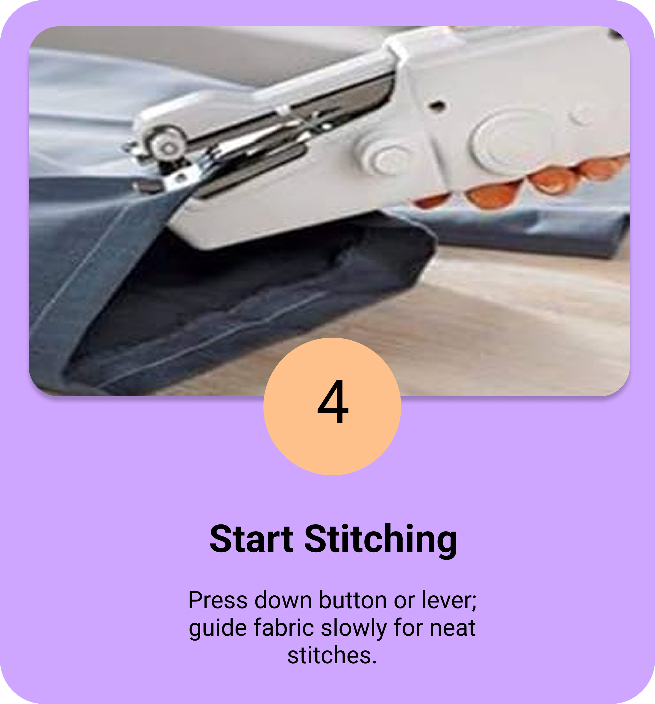 3. Press the top of the machine up and down and do over, then the right hand should move to right step by step and let left hand hold the cloth the control the direction.