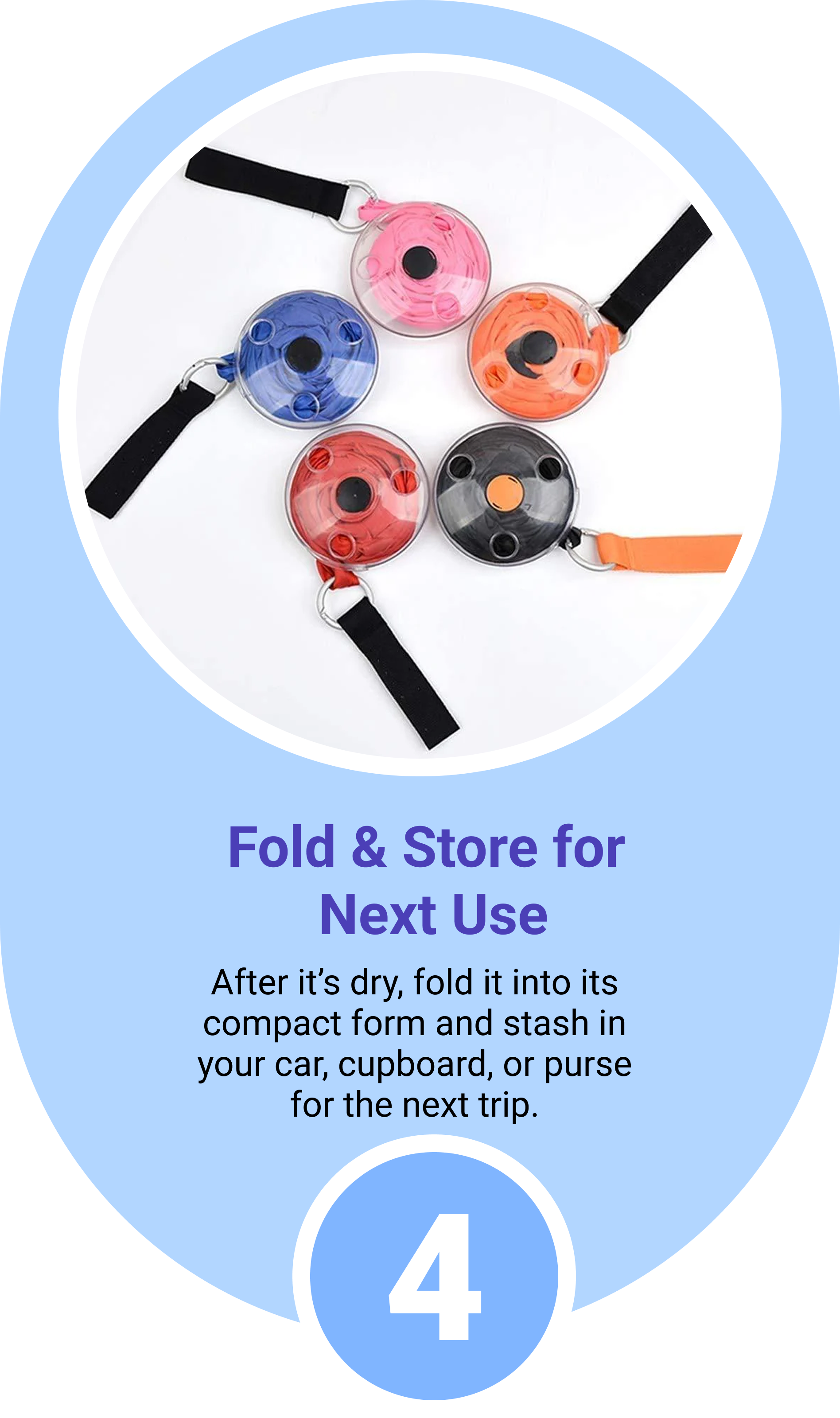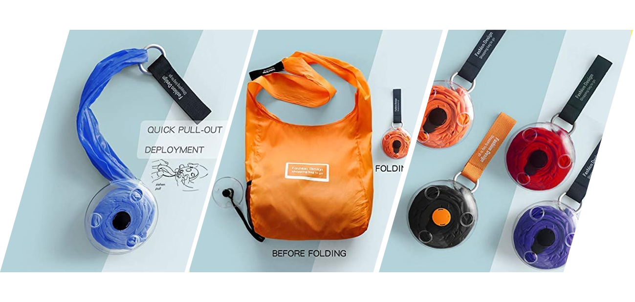 When not in use, the bag is folded and roll-up in a case which only takes 10 cm space. When it's unfolded, it can stretch to 32×40 cm generous space for you to put lots of shopping in, be it a pair of jeans, grocery and many more items.