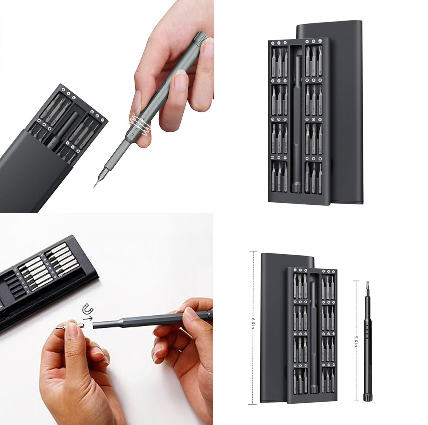 24 in 1 Precision Screwdriver Tool Kit with Multiple Interchangeable Bits for Eyeglasses, Watches, Small Electronics & Household Repairs – Medium Size Set