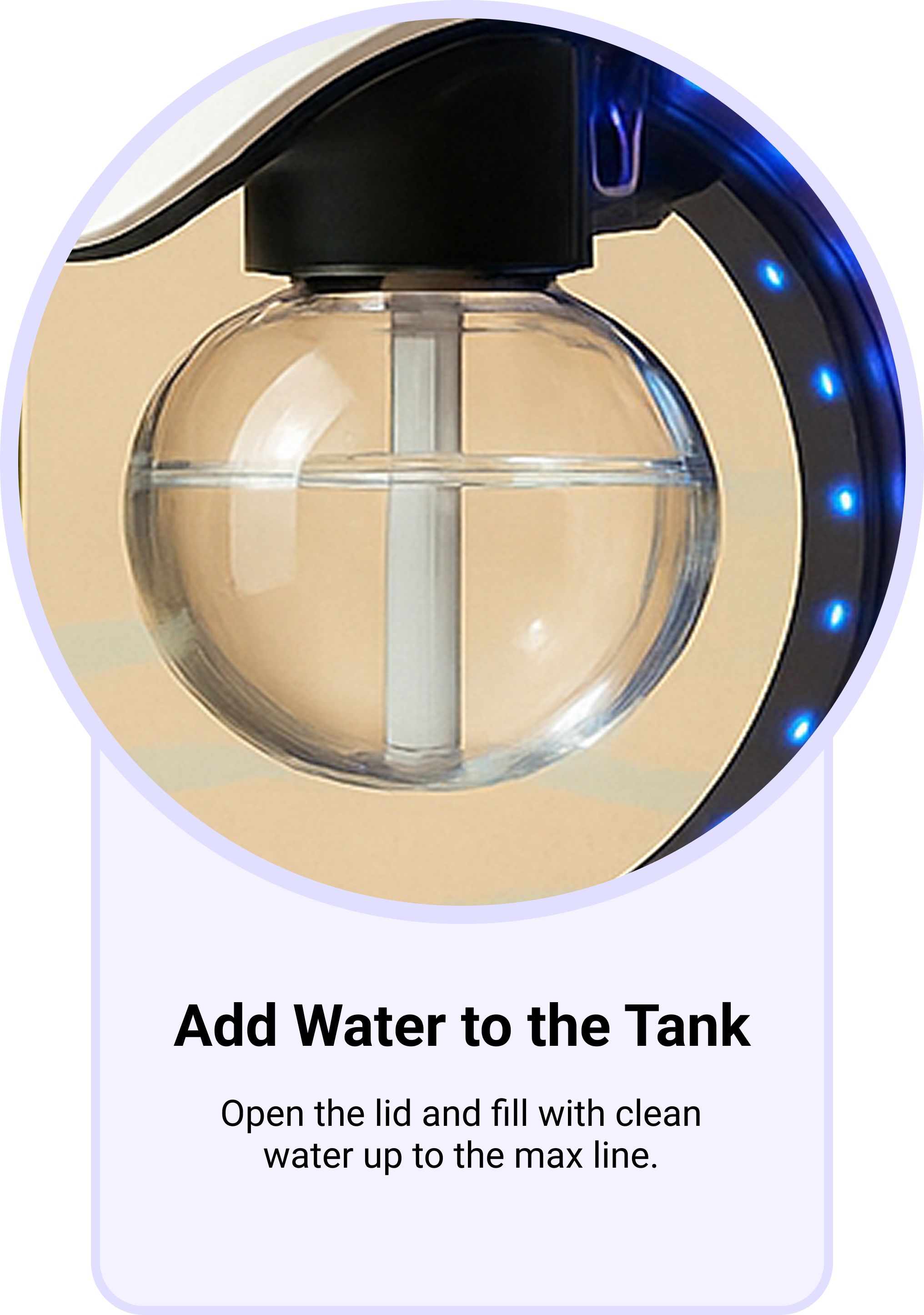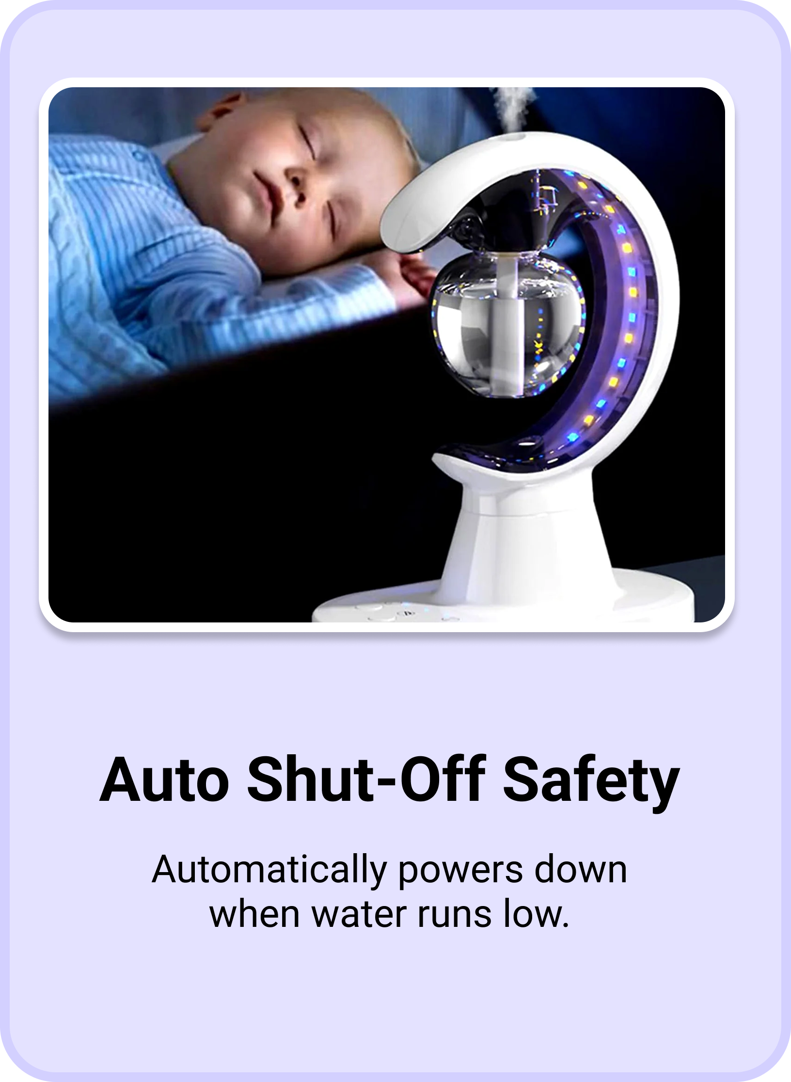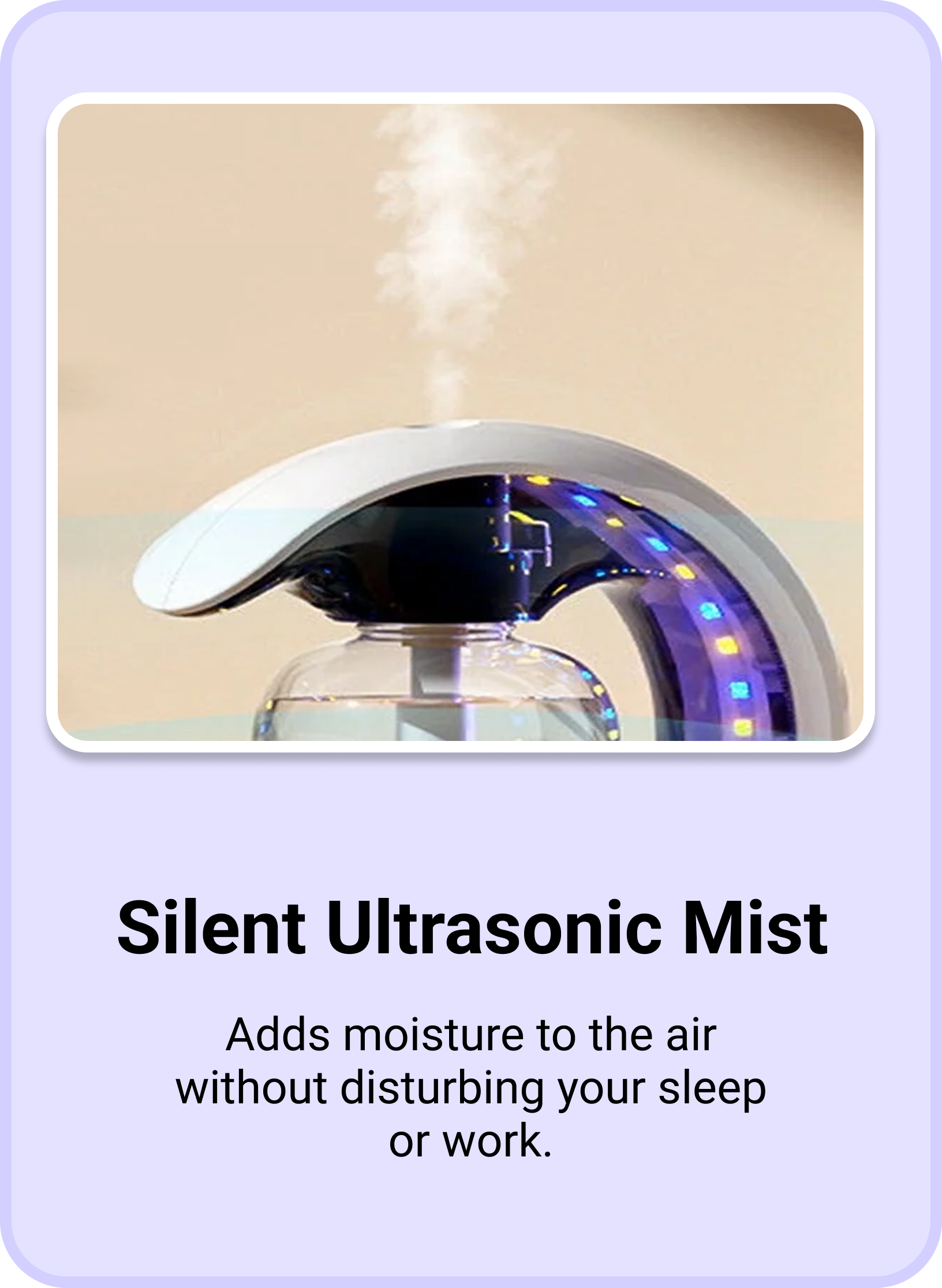 Humidifier Mode Releases a fine mist to moisturize dry air, improve breathing comfort, and protect skin from dryness.