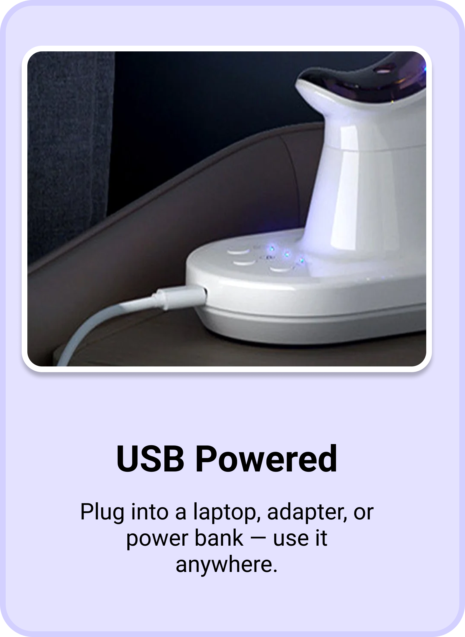USB Powered Energy-efficient and convenient to use with any USB adapter, laptop, or power bank.