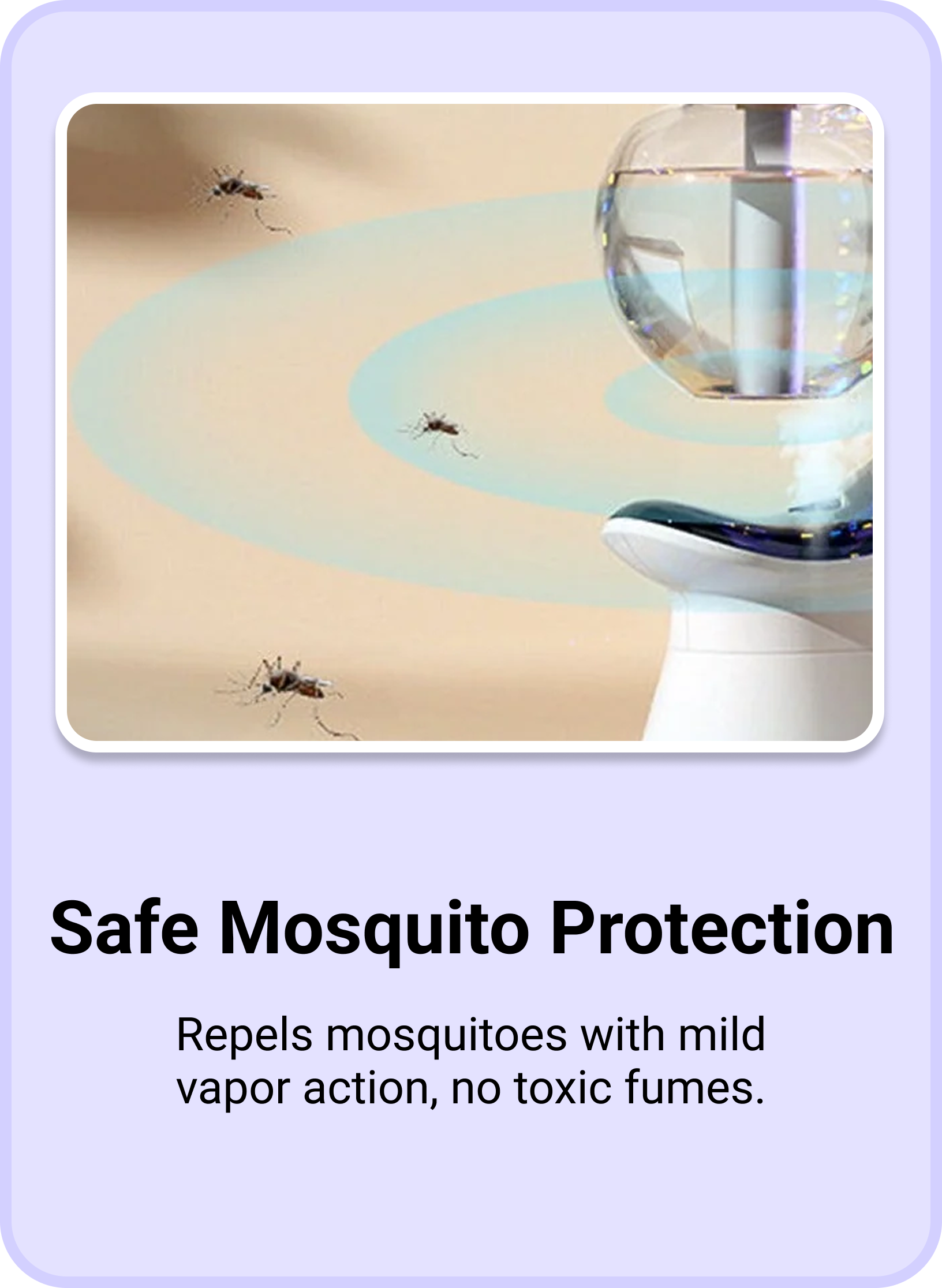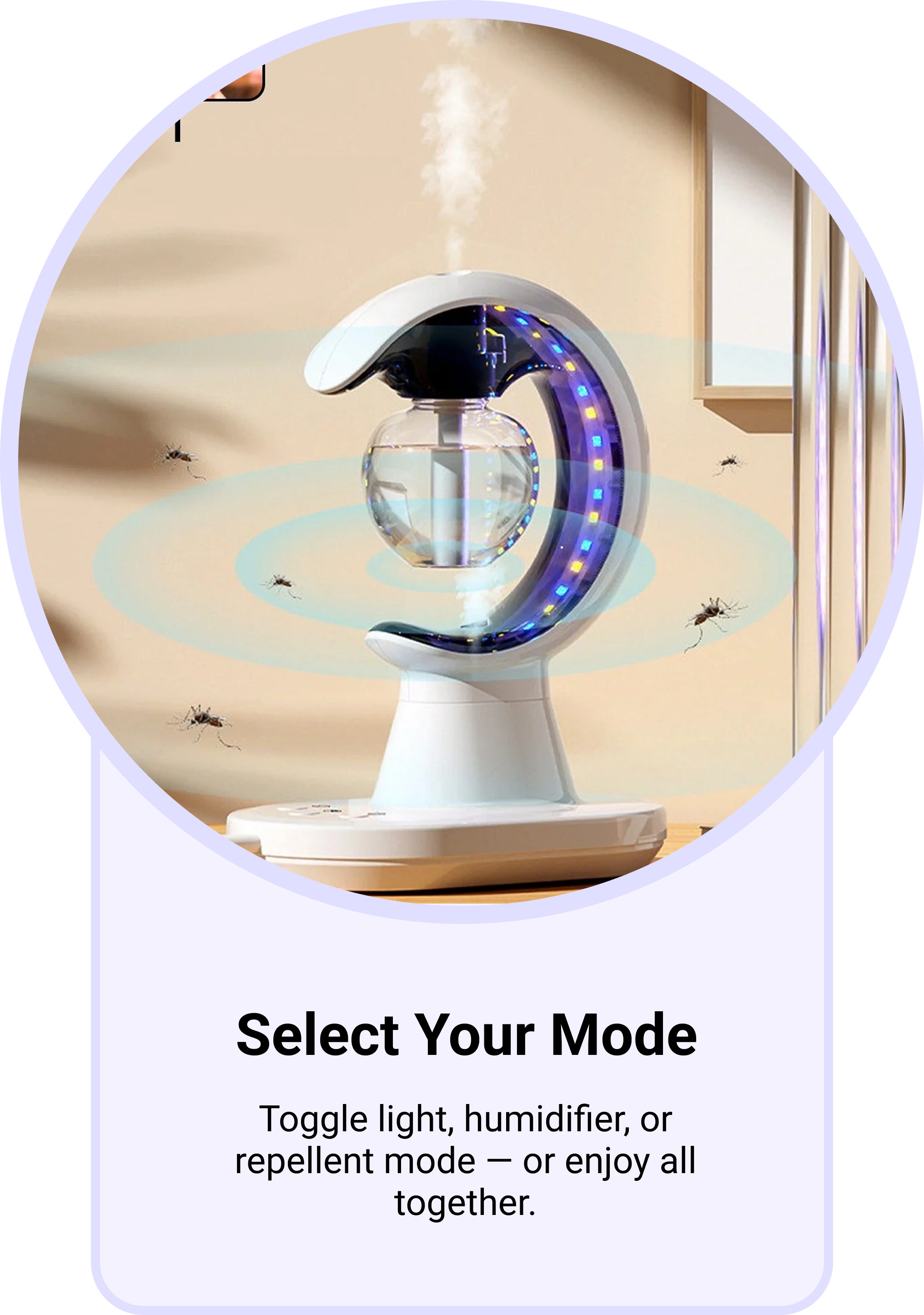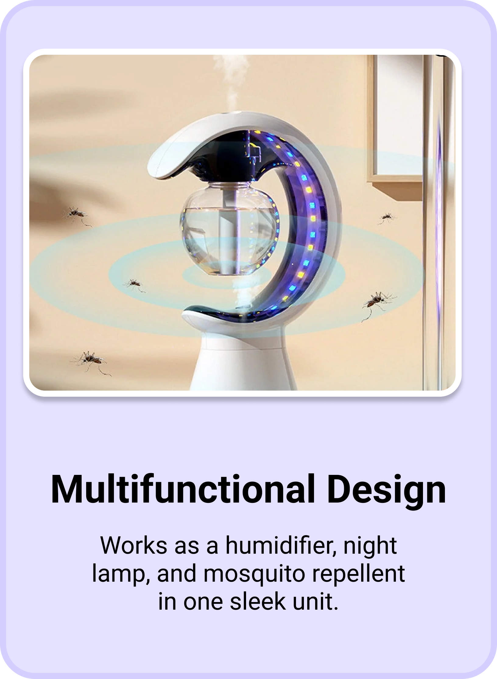 3-in-1 Multifunction Design Humidifier, mosquito repellent, and LED lamp in one device.