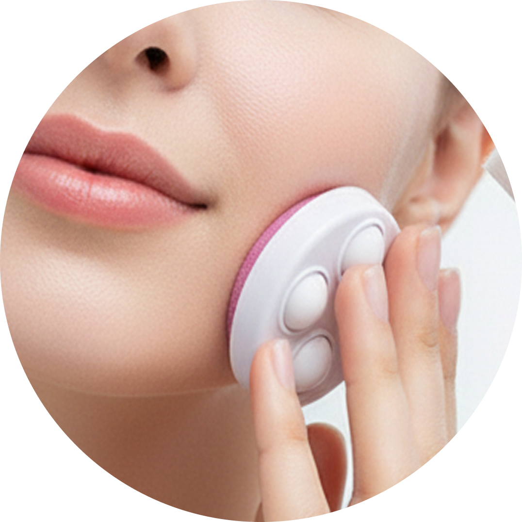 Fix the massage ball head and glide it along your cheeks, jawline, neck, or arms to improve circulation and relax muscles.