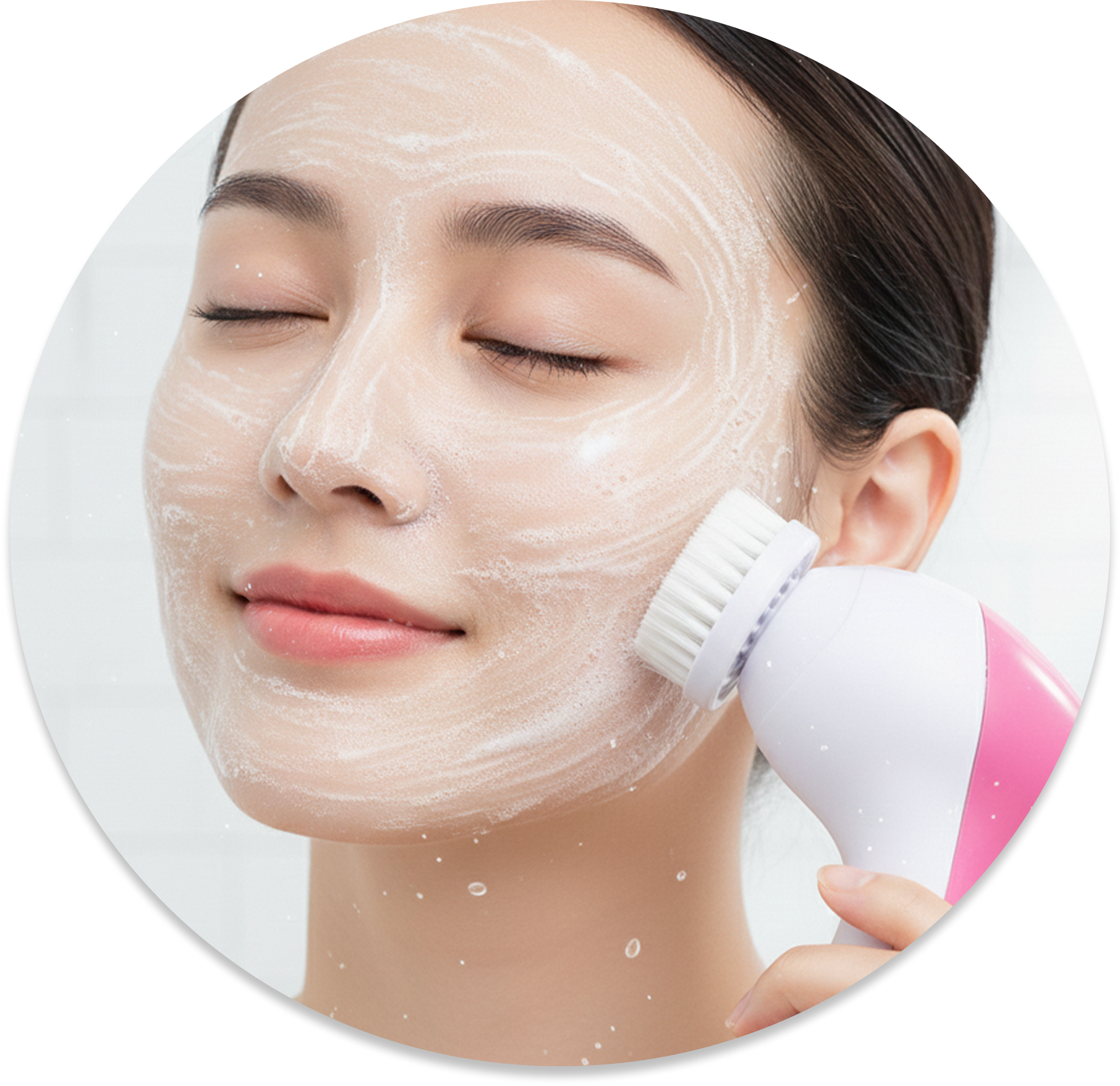 Attach the soft brush or sponge, switch on the device, and gently move it over your face to cleanse and remove impurities.