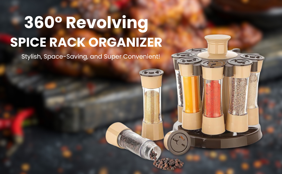 360° Revolving Spice Rack - 8 Jar Spice Organizer for Kitchen & Dining Table