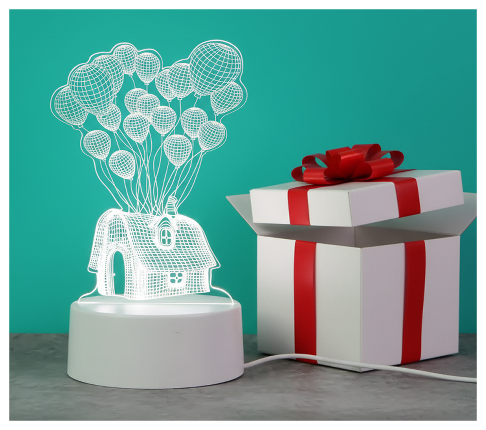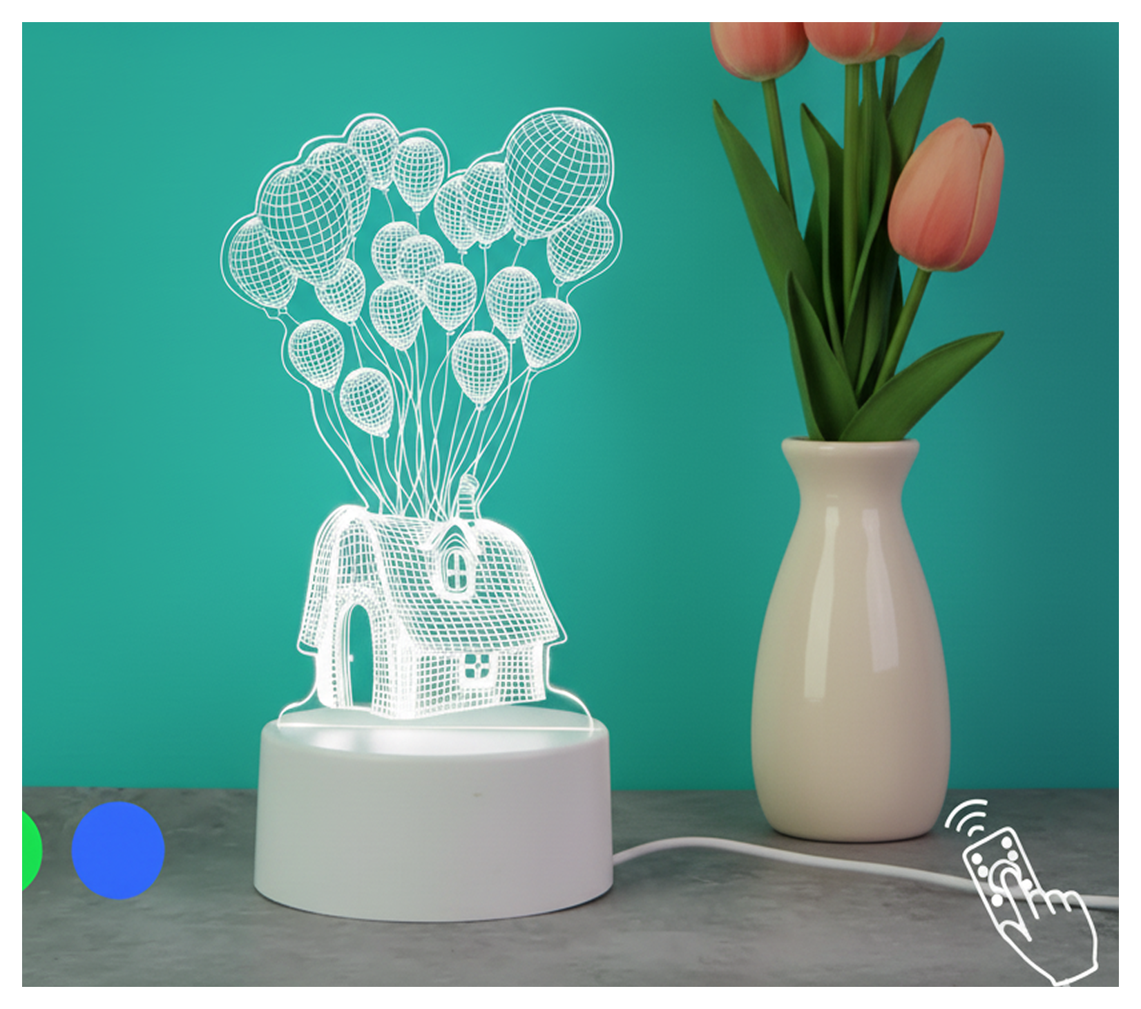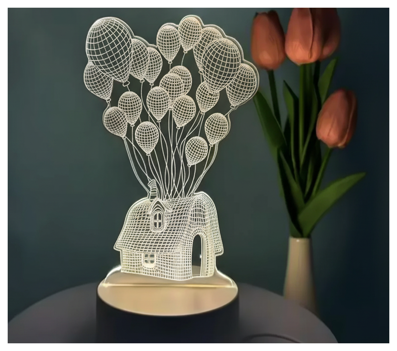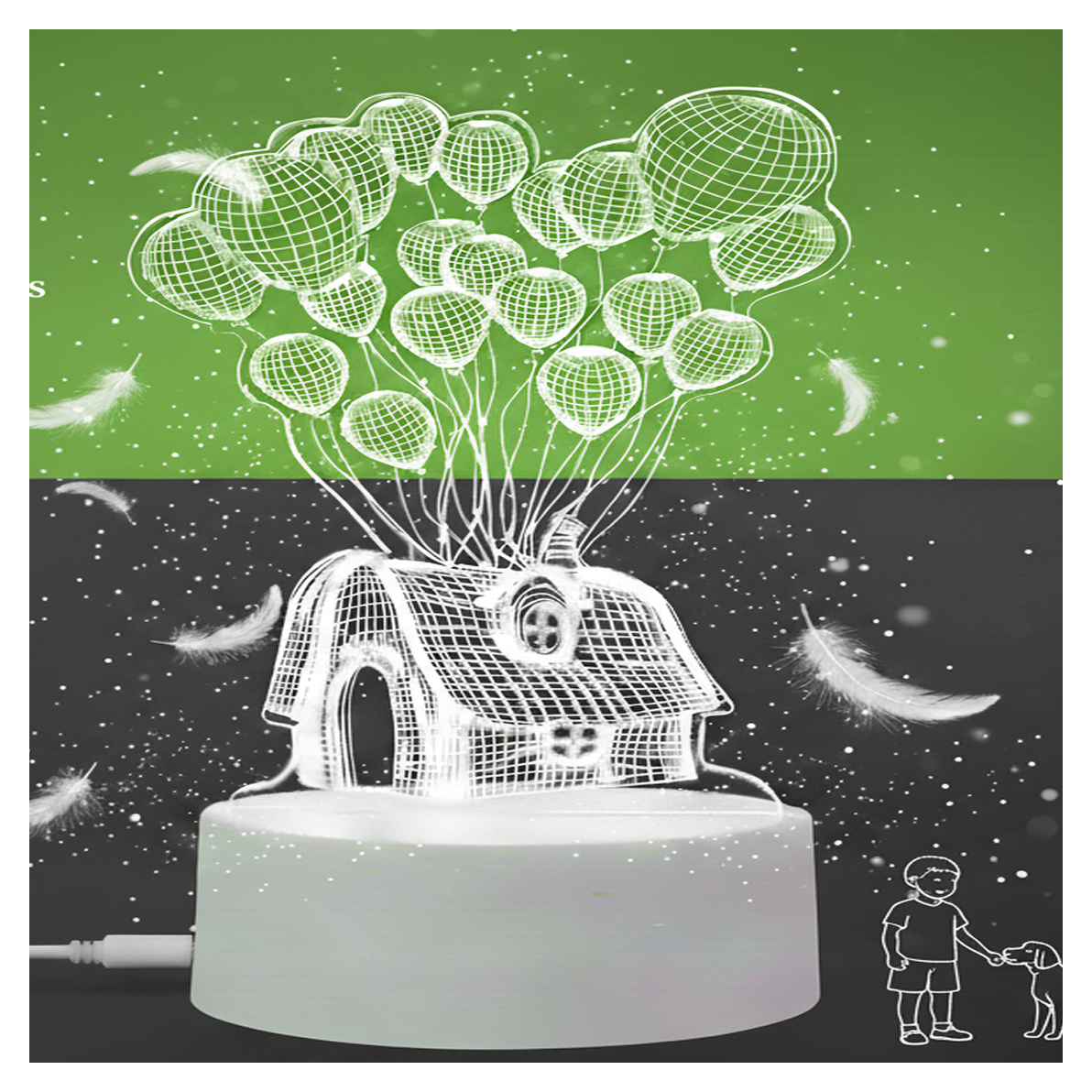 Mesmerising Depth & Design The engraved acrylic panel creates a vivid illusion of a house lifted by balloons, giving depth and wow-factor.