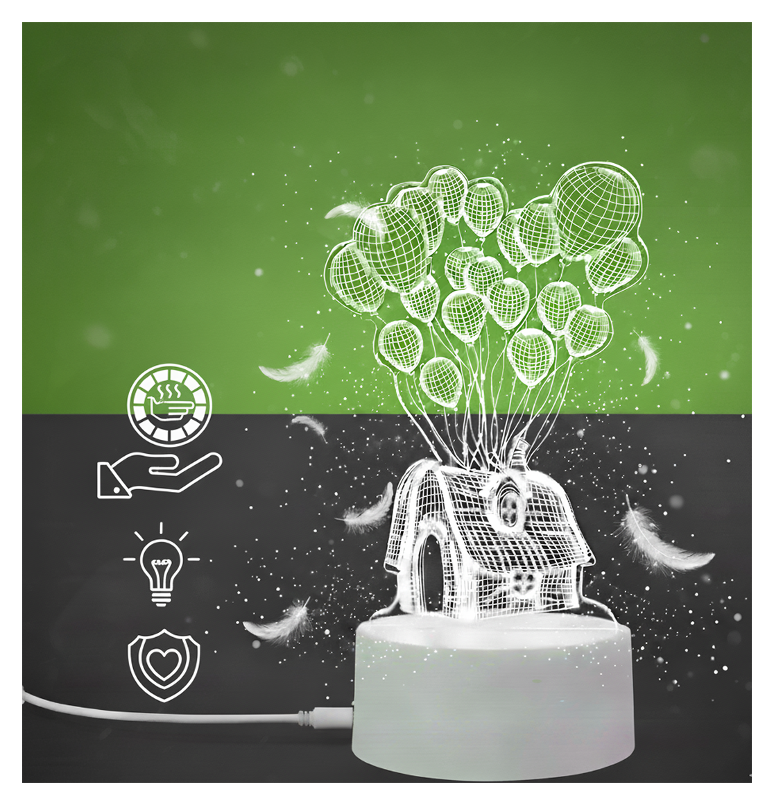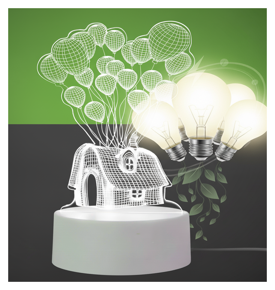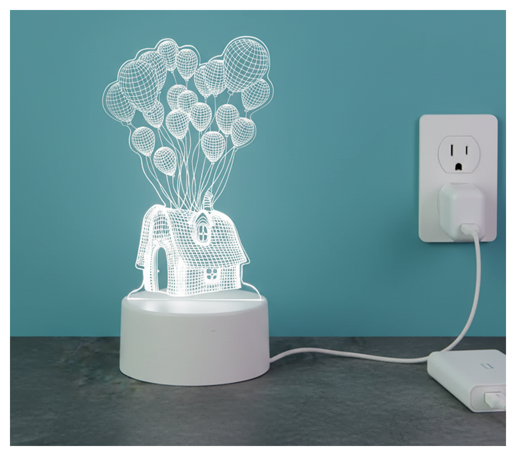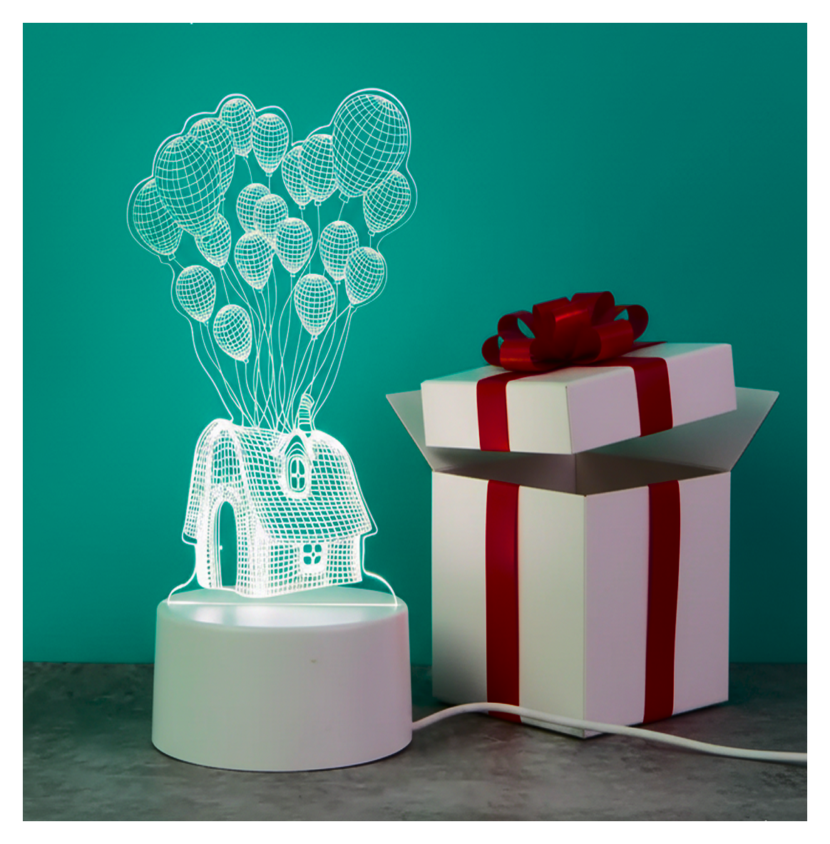 Mesmerising Depth & Design The engraved acrylic panel creates a vivid illusion of a house lifted by balloons, giving depth and wow-factor.