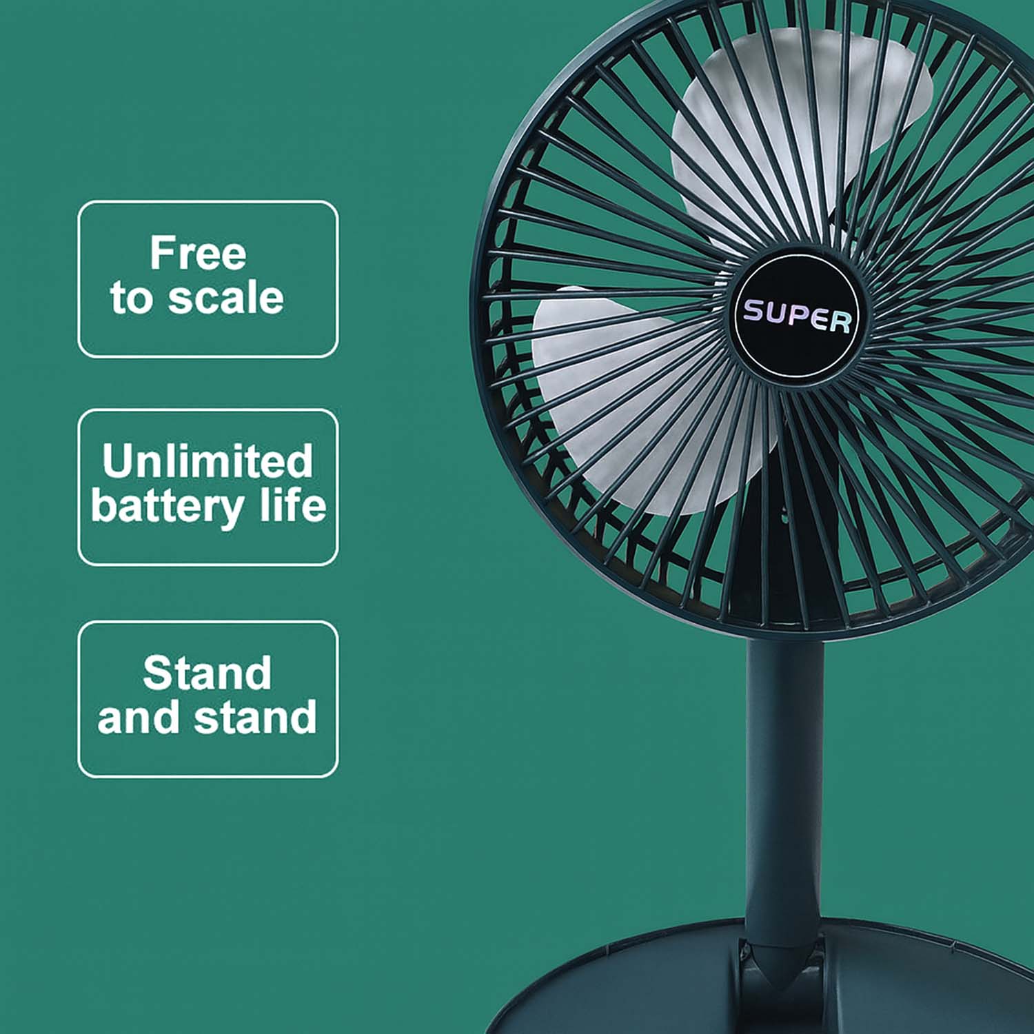 Telescopic Electric Desktop Fan – Foldable, Height Adjustable & Portable Table Fan (Battery Not Included)