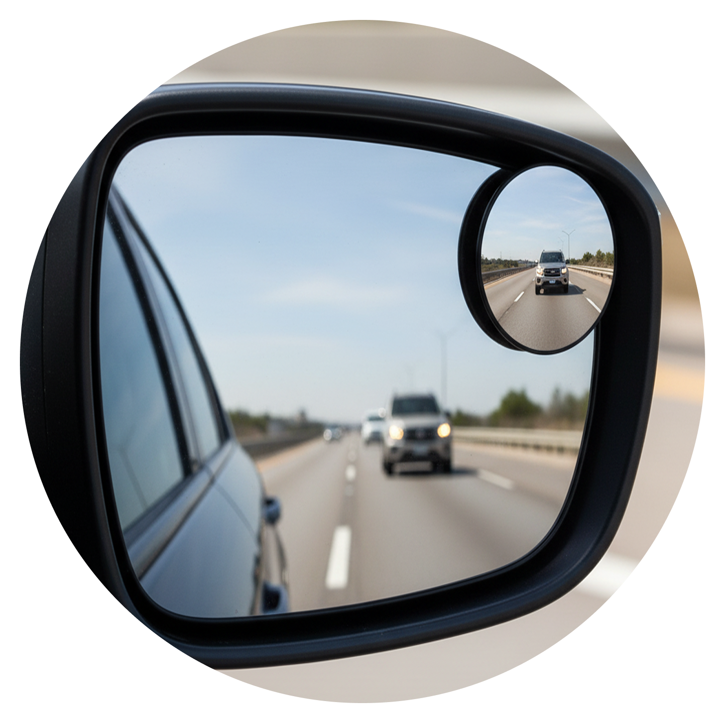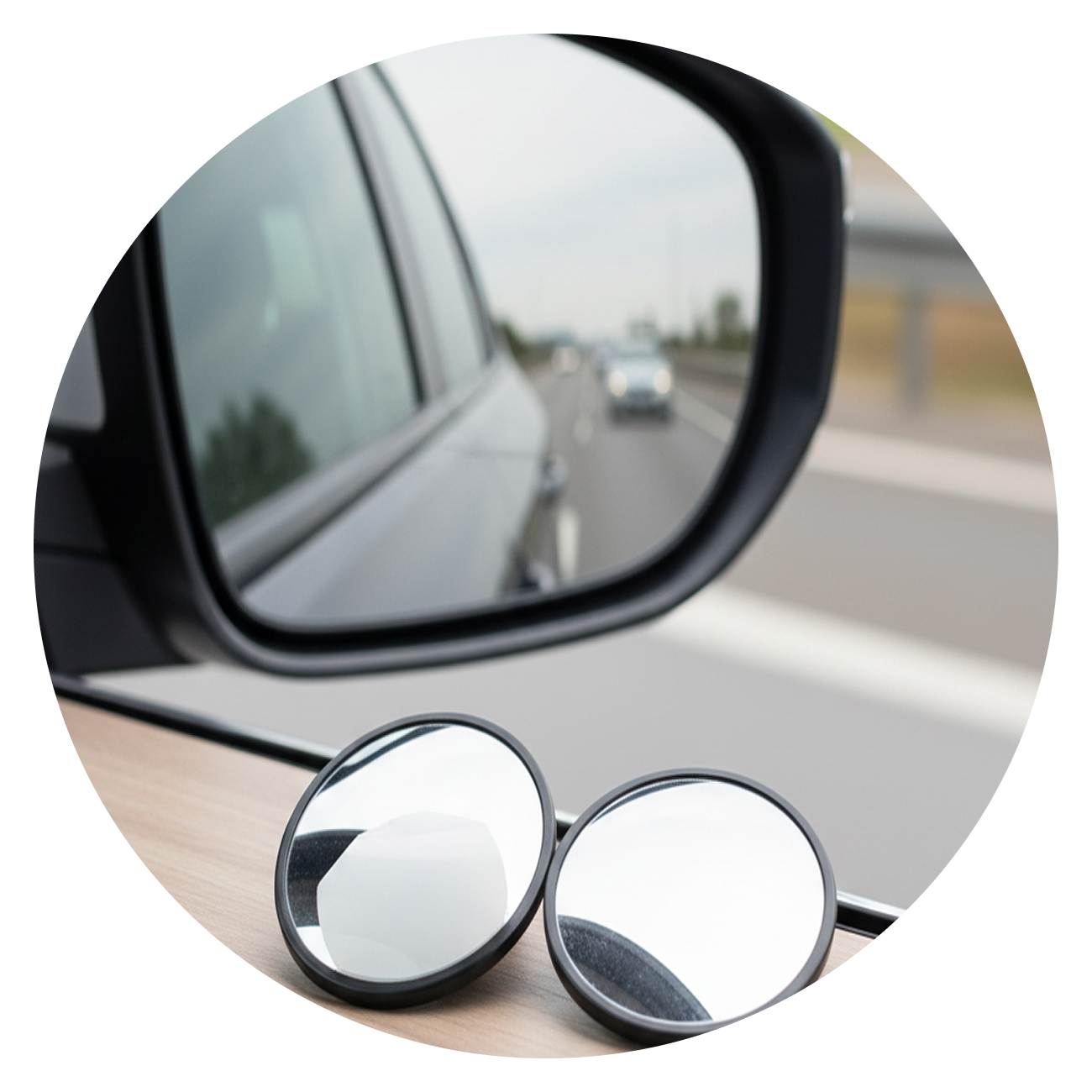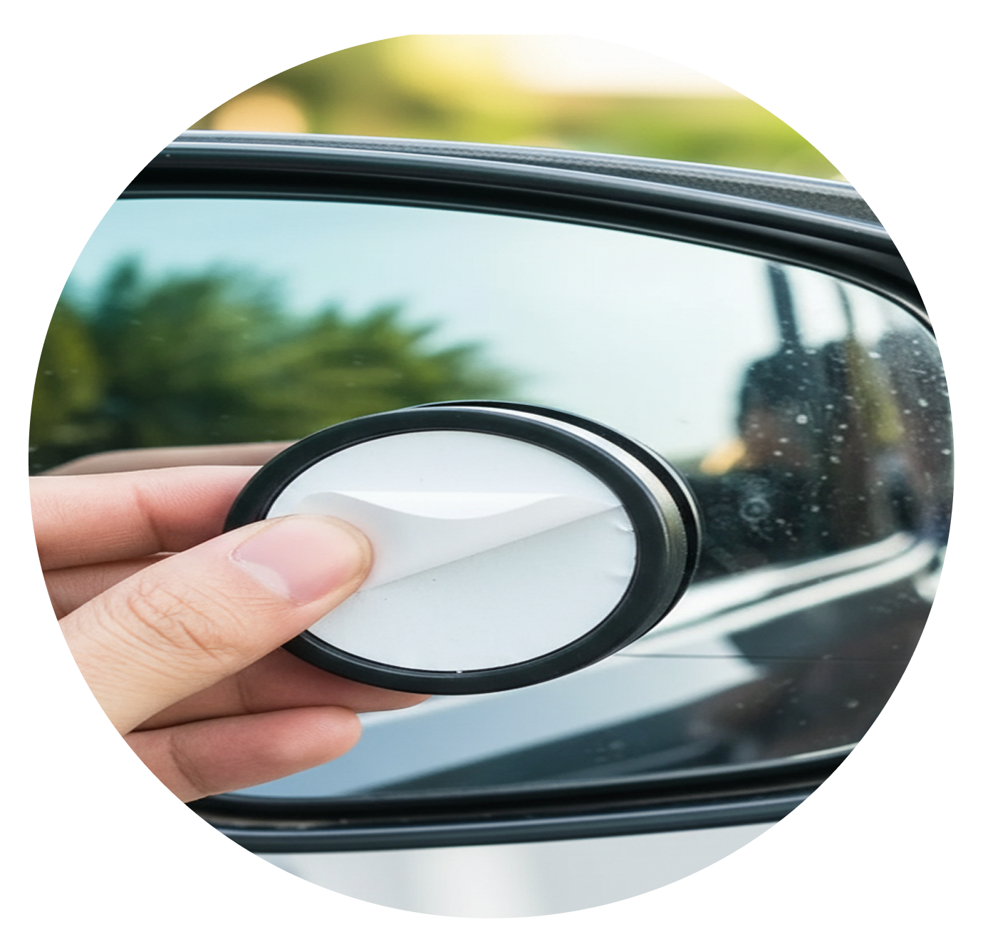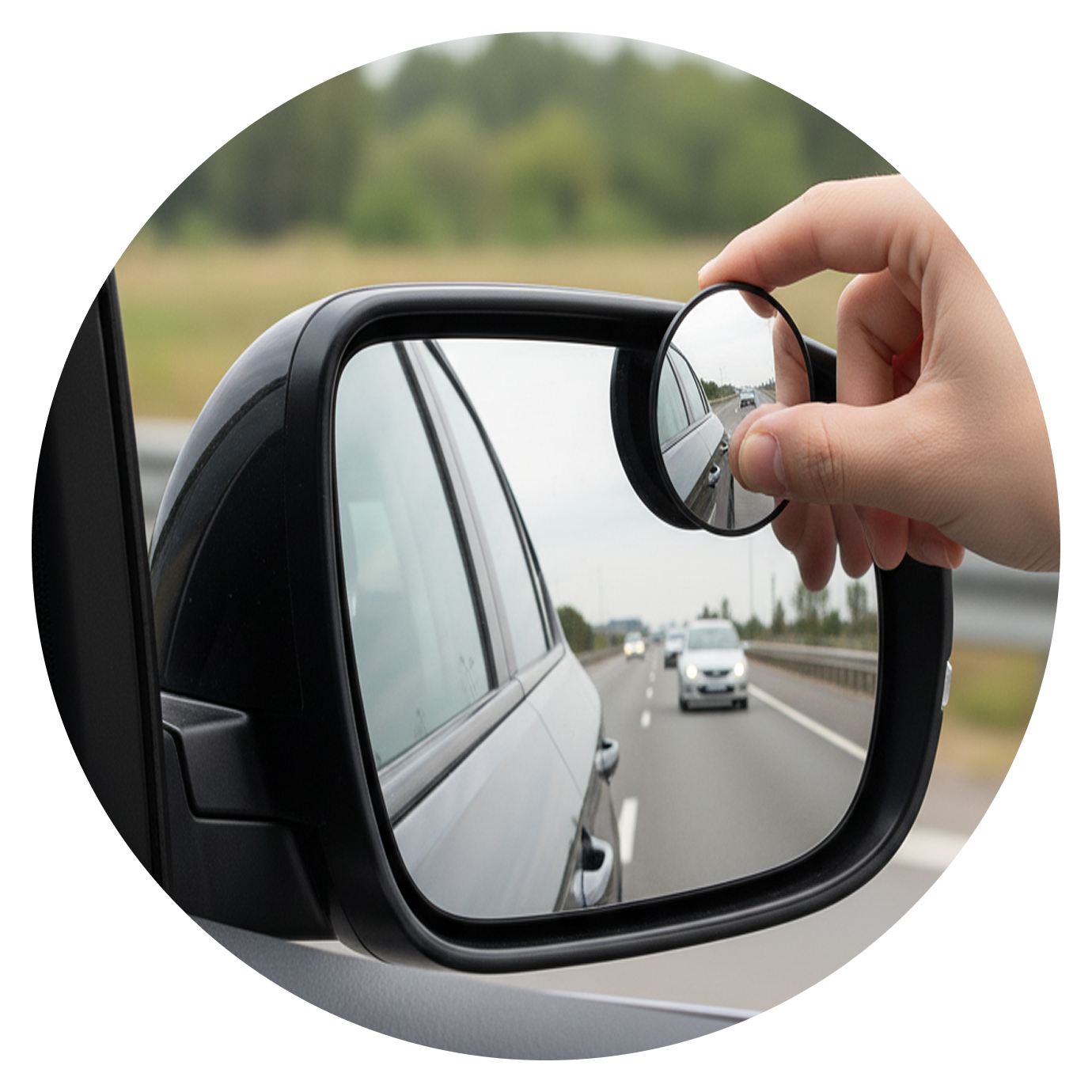 It’s a small convex mirror that attaches to your car’s side mirror to help you see vehicles or obstacles in your blind spot.