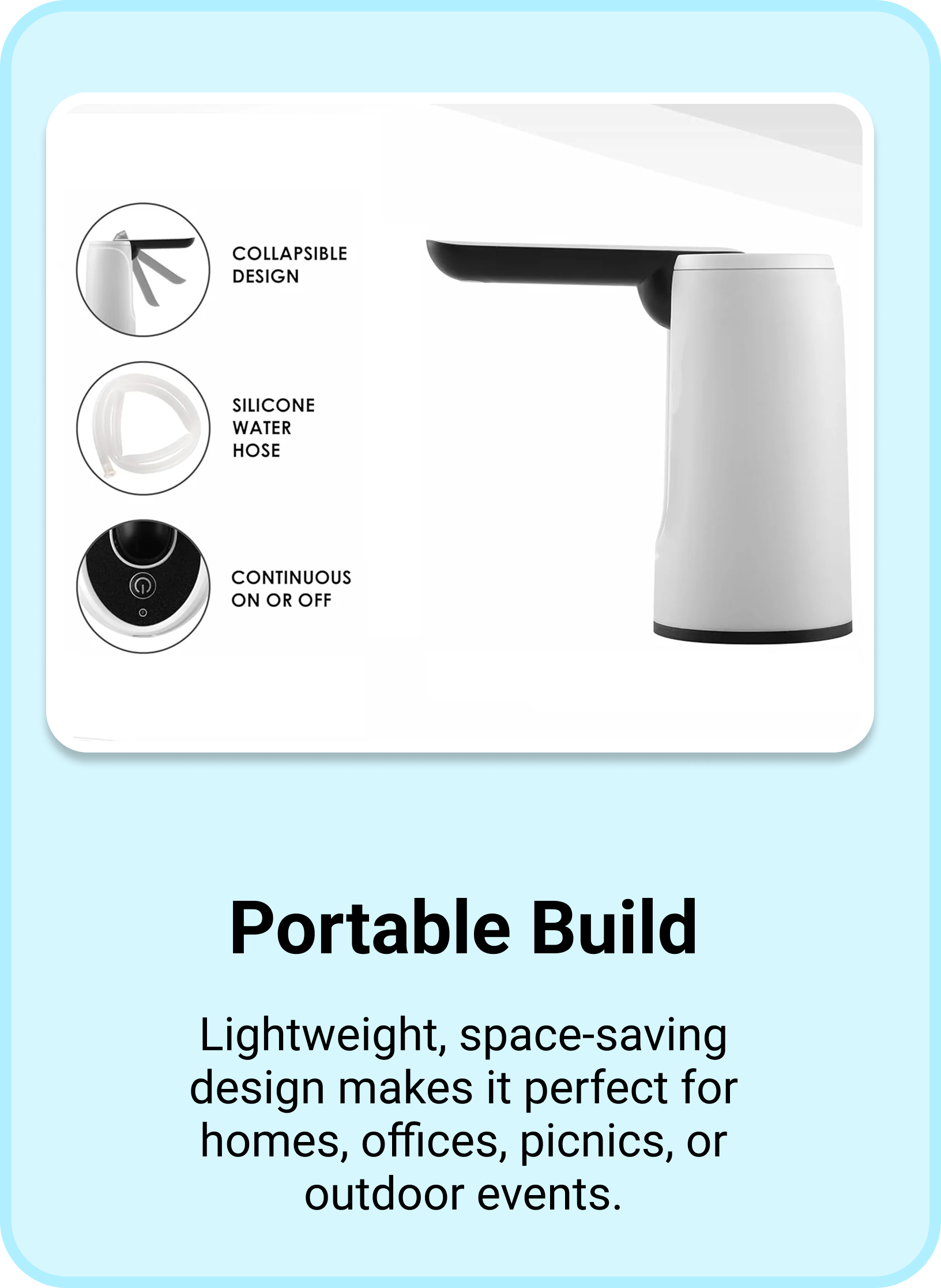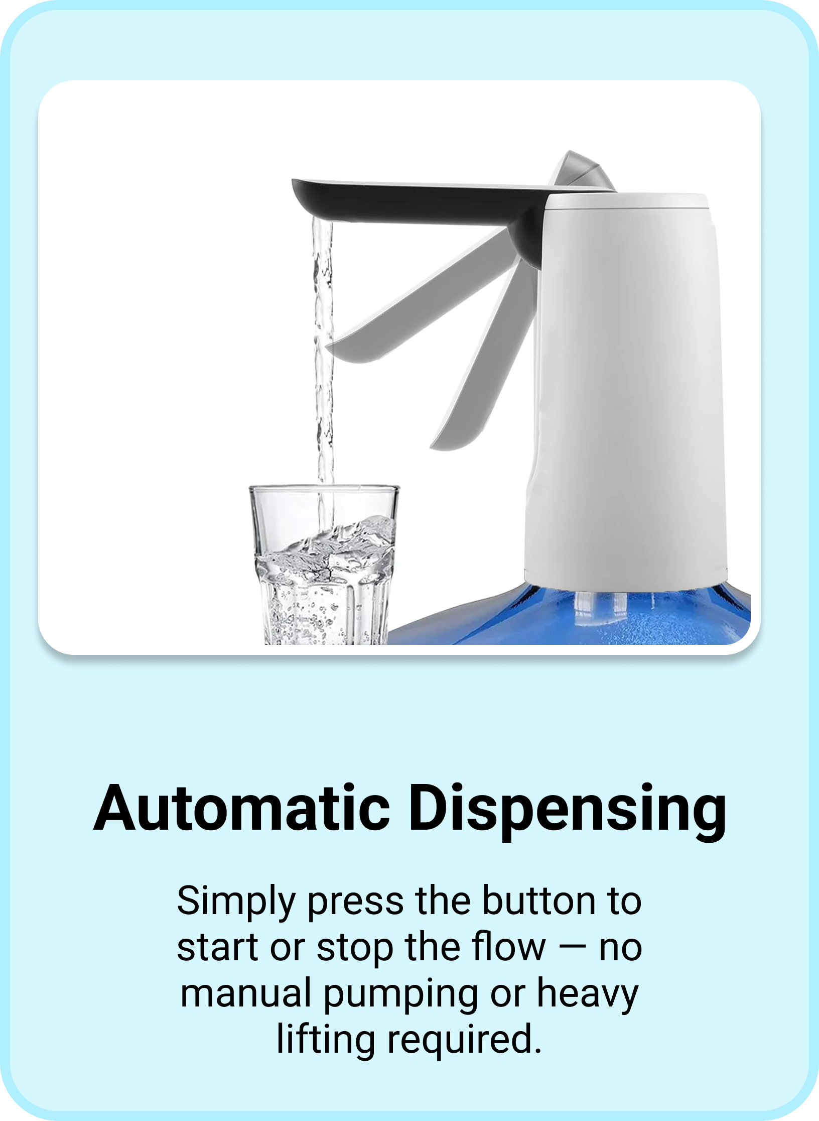 This is a portable, electric, and automatic water dispenser pump designed to easily dispense drinking water from large water bottles.