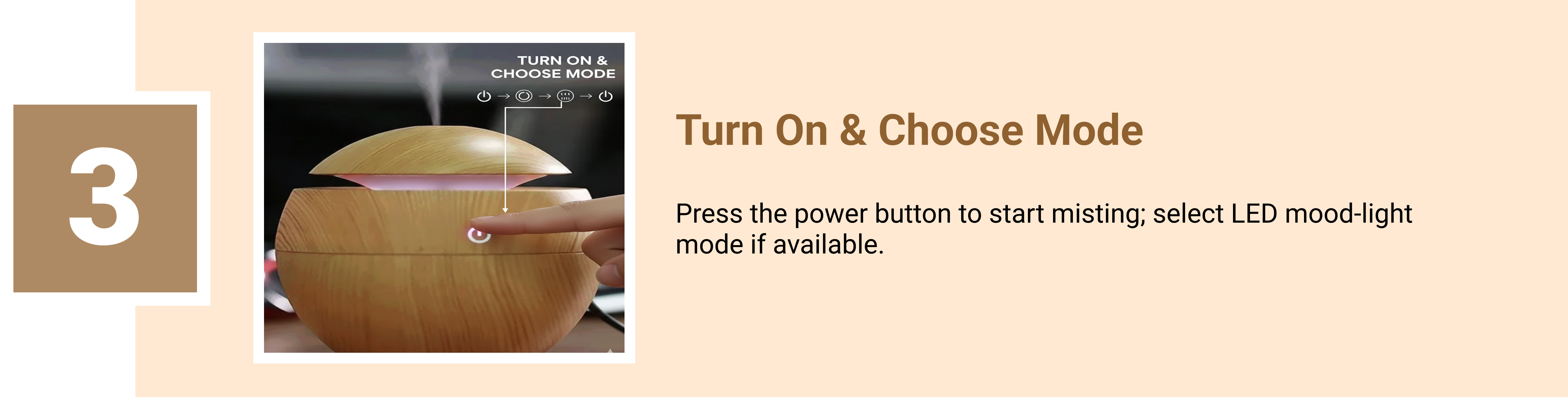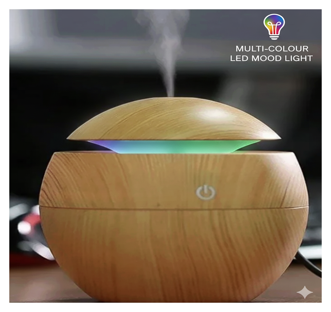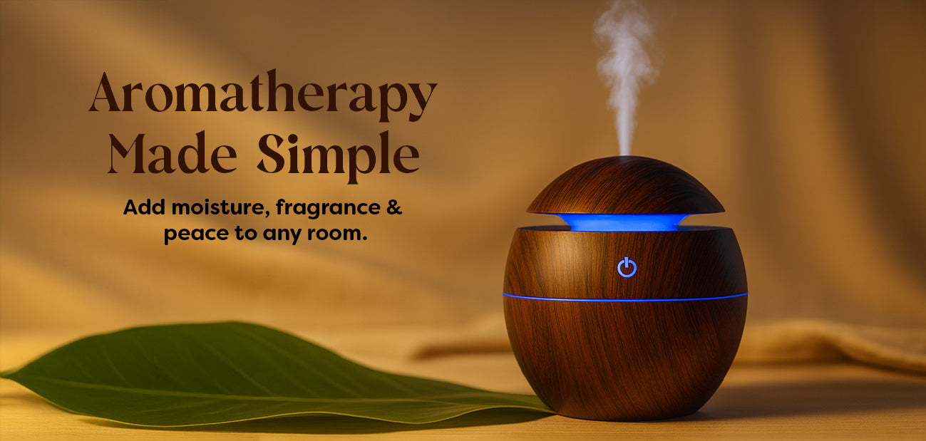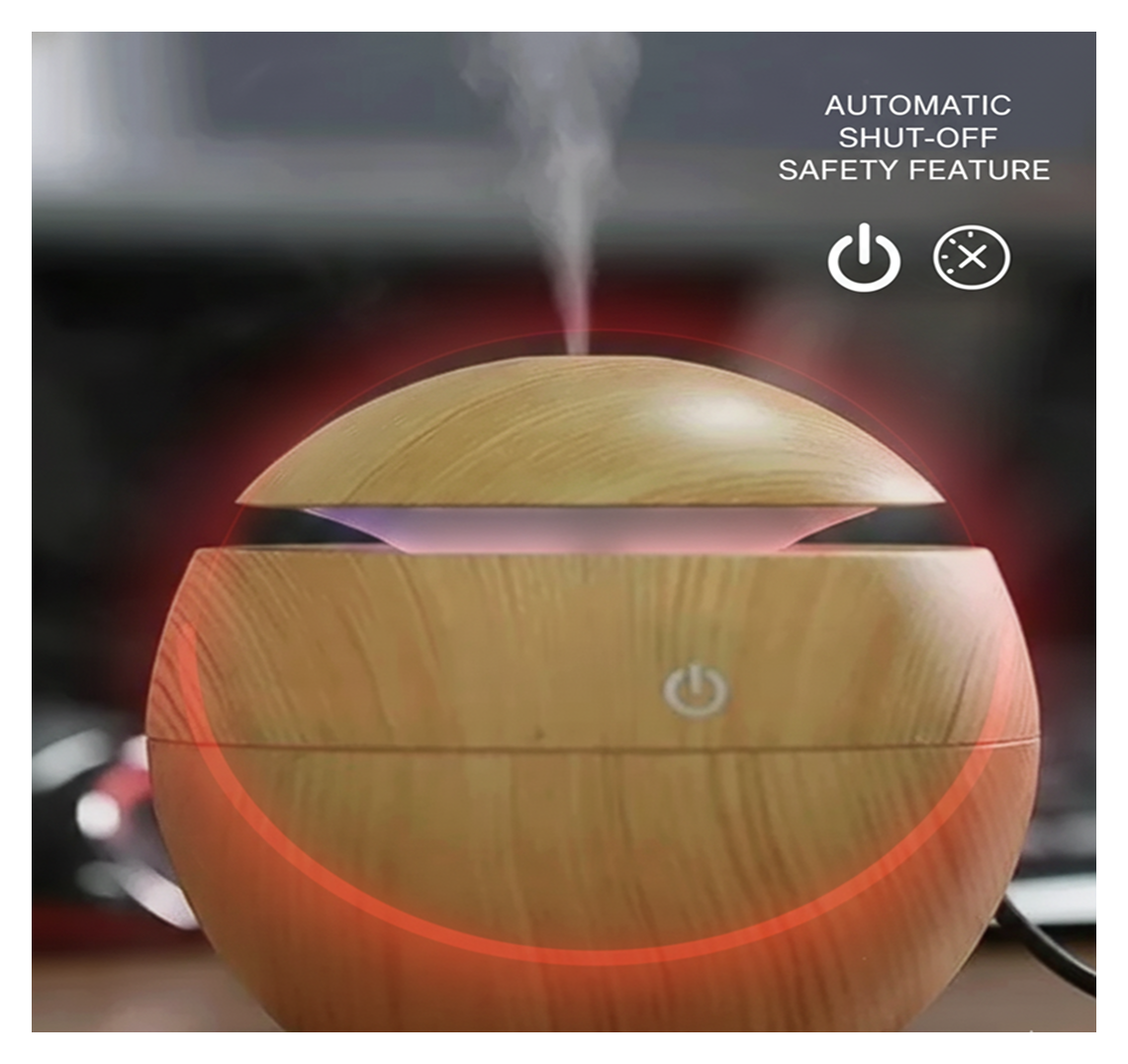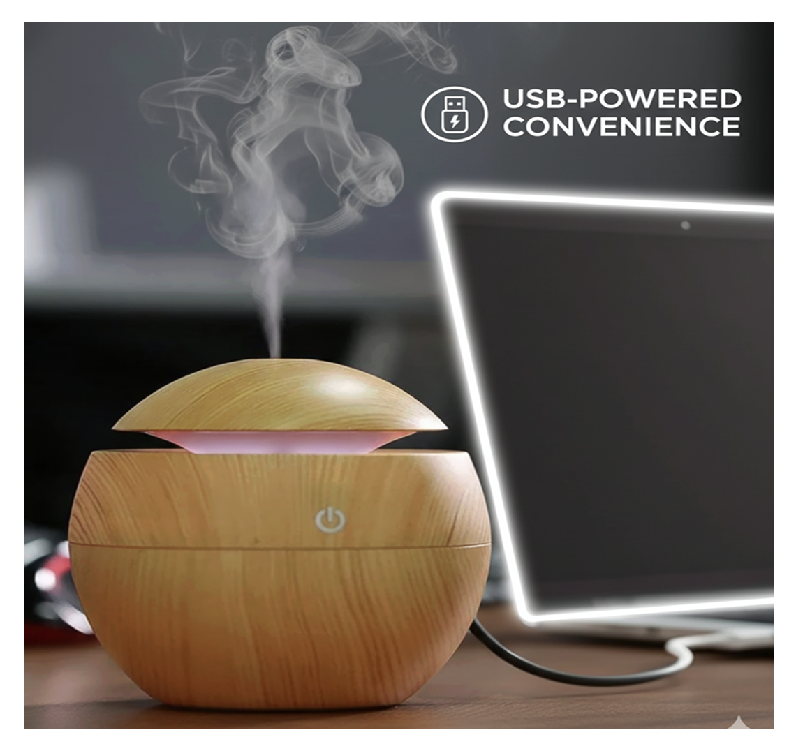 Add water and a few drops of essential oil, plug it in, and press the power button. It releases a fine mist that humidifies the air and spreads fragrance.